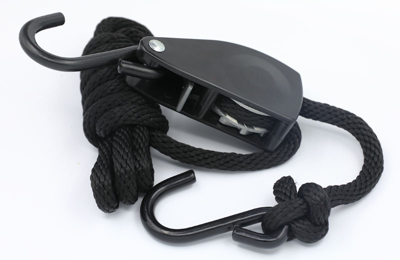 使用绳索棘轮,您只需连接两个钩子并拉动绳索的松动端,即可获得所需的牢固密封性。